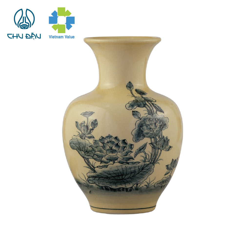 Sản phẩm được nghệ nhân Chu Đậu vẽ thủ công dưới men (men được chiết xuất từ tro trấu - Dòng men đã được công nhận độc bản Việt Nam).