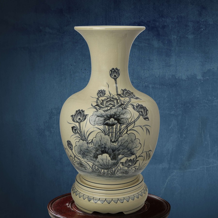 - Phần chân bình là họa tiết cánh Sen cách điệu, thể hiện cho văn hóa tín ngưỡng phồn thịnh của người Việt.