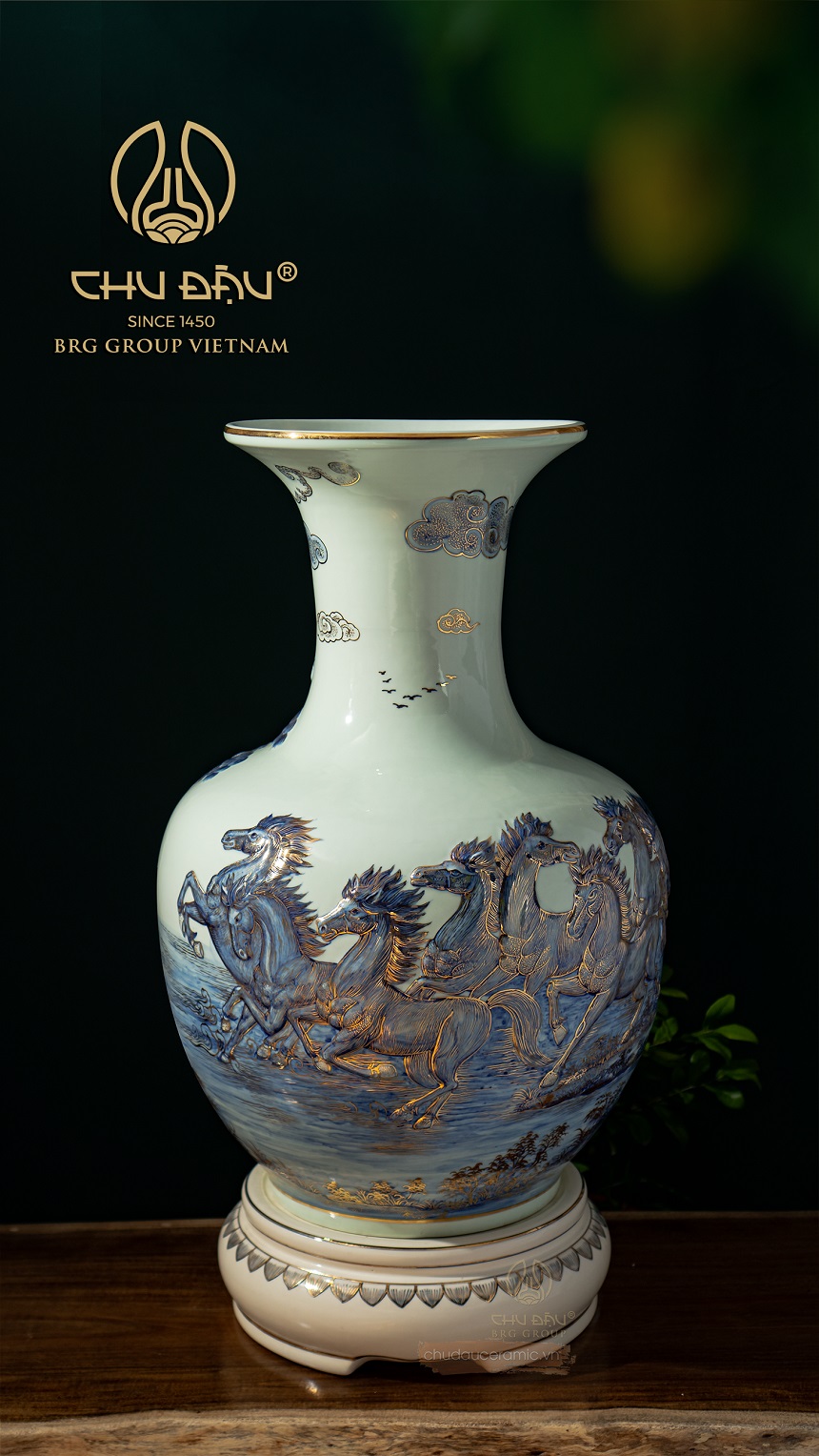 Bình Phú quý Bát mã - Mã đáo thành công Gốm Chu Đậu