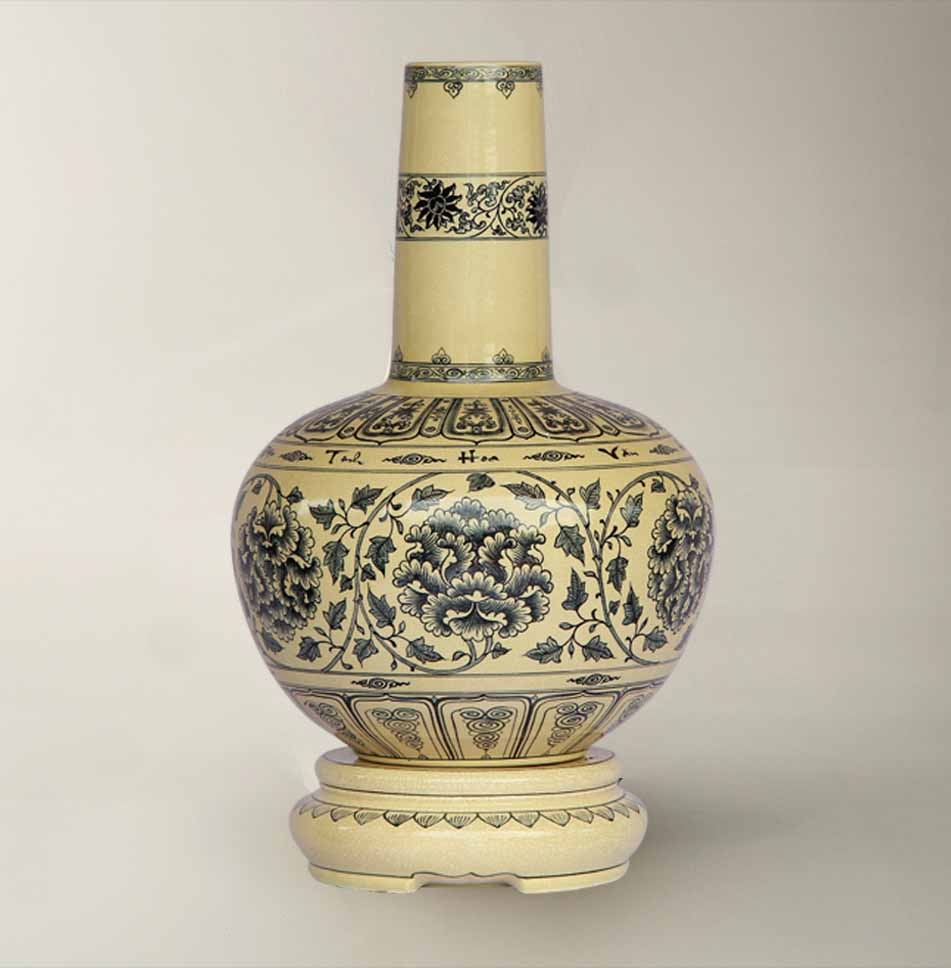 Bình hoa lam gốm Chu Đậu - Thương hiệu Quốc gia được nghệ nhân chế tác phỏng theo chiếc bình gốm cổ Chu Đậu triều Trần – Lê Sơ (thế kỷ XIV - XV).