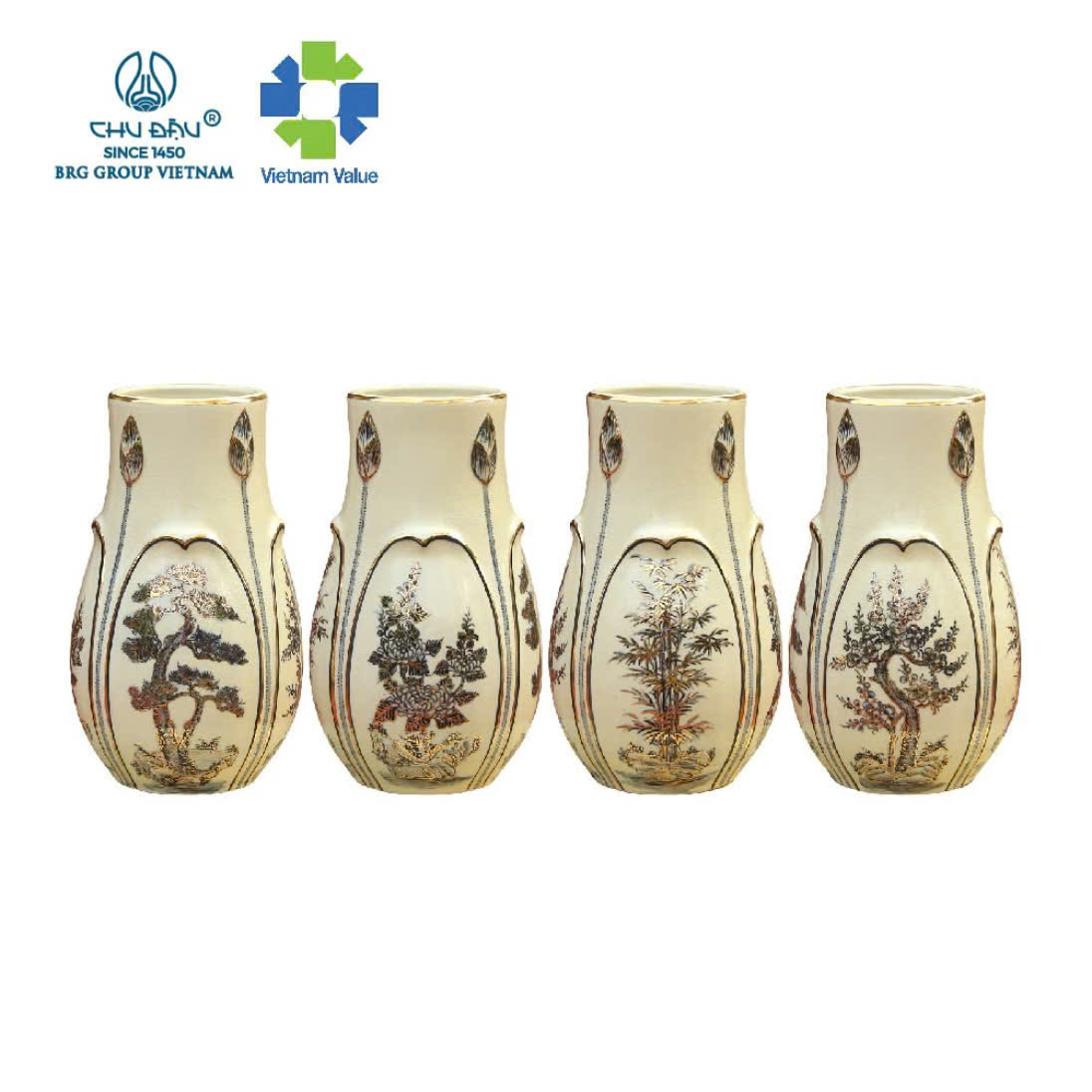 Bình hoa sen gốm Chu Đậu tứ cảnh vàng kim