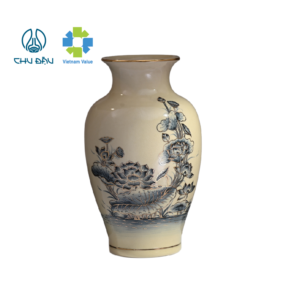 Bình minh xuân Gốm Chu Đậu vẽ hoa sen