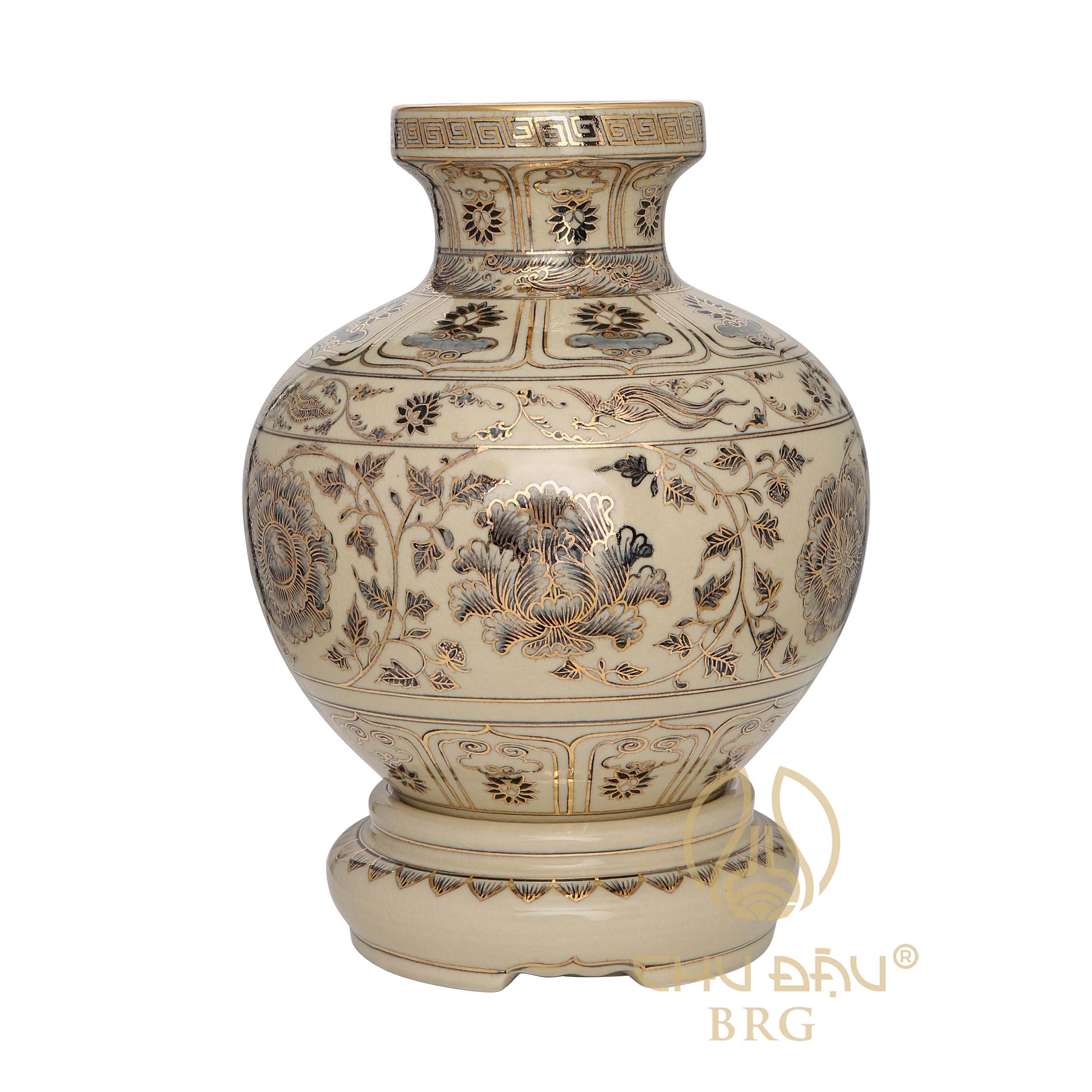 Bình phượng hoàng vàng kim Gốm Chu Đậu - Thương hiệu Quốc gia phỏng theo chiếc bình gốm cổ là bảo vật quốc gia đang được lưu giữ trang trọng tại Bảo tàng Lịch sử Việt Nam. Liên hệ 0969.655.095 để được tư vấn.