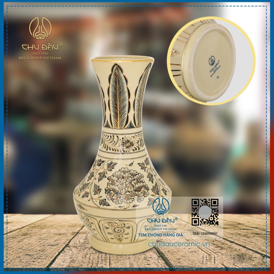 Bình thiên hương Gốm Chu Đậu - Thương hiệu Quốc gia được nghệ nhân phục dựng phỏng theo bình gốm cổ triều Trần - Lê Sơ (thế kỷ 14 - 15).