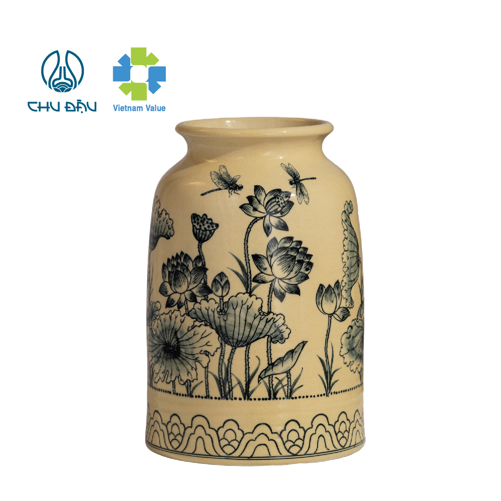 Dưới bàn tay khéo léo, sự sáng tạo của các nghệ nhân gốm Chu Đậu đã tạo ra chiếc bình tuyết lan với kiểu dáng thân trụ, miệng nhỏ, trang trí lên đó là họa tiết hoa sen thể hiện cuộc sống miền quê dân dã mộc mạc nhưng trang trọng, tinh tế mang đậm bản sắc văn hóa Việt Nam.