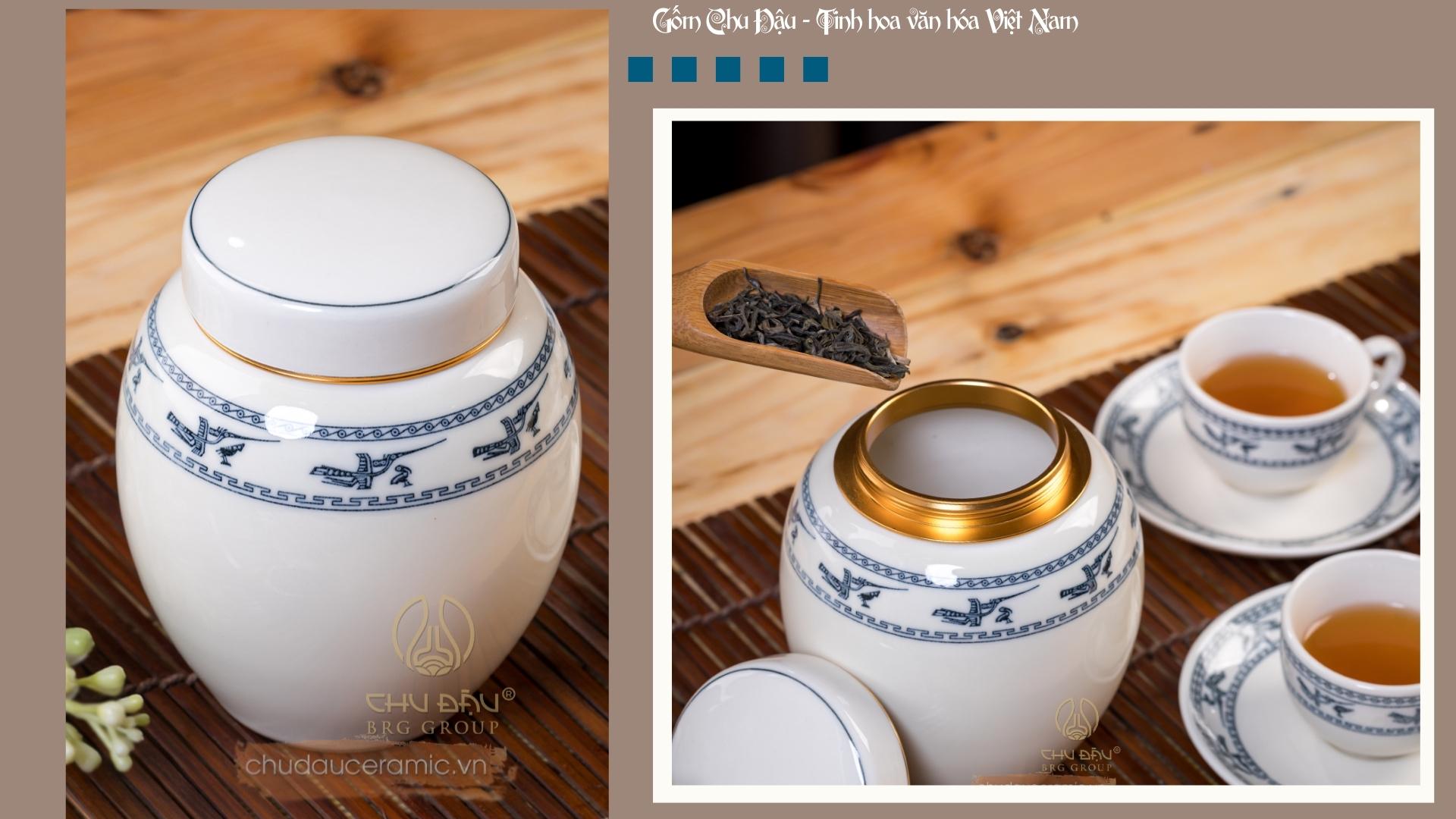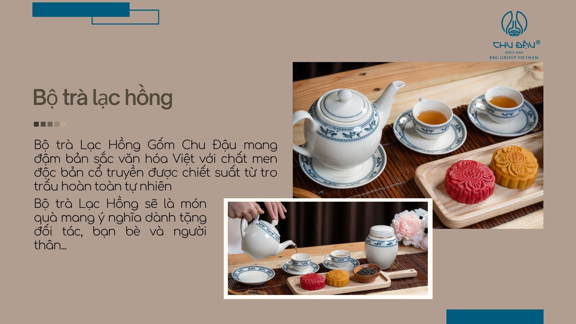 Bộ trà Lạc Hồng Gốm Chu Đậu mang đậm bản sắc văn hóa Việt với chất men độc bản cổ truyền được chiết suất từ tro trấu hoàn toàn tự nhiên