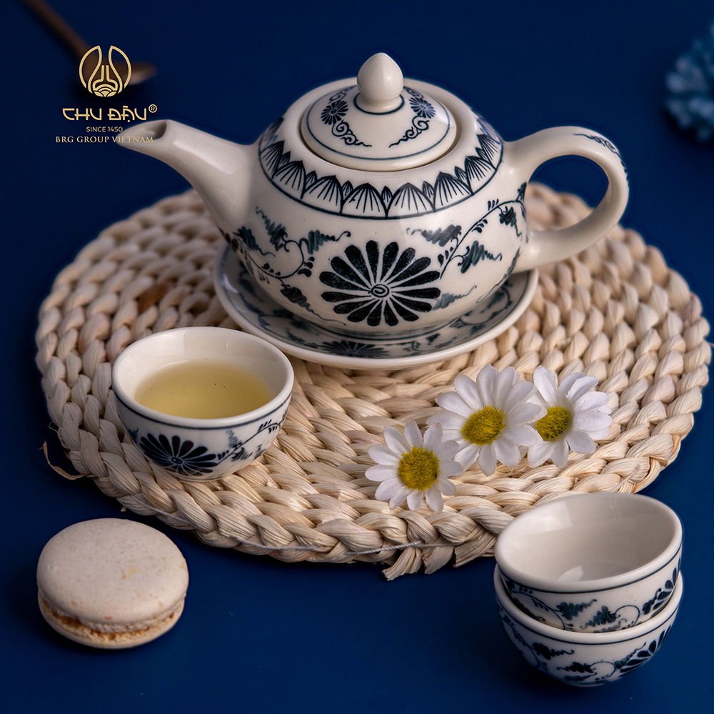 Bộ trà song ẩm vẽ hoa cúc dây gốm Chu Đậu - Thương hiệu Quốc gia là dòng sản phẩm gia dụng cao cấp thuần Việt được sản xuất theo dây chuyền công nghệ hiện đại kết hợp với thủ công truyền thống