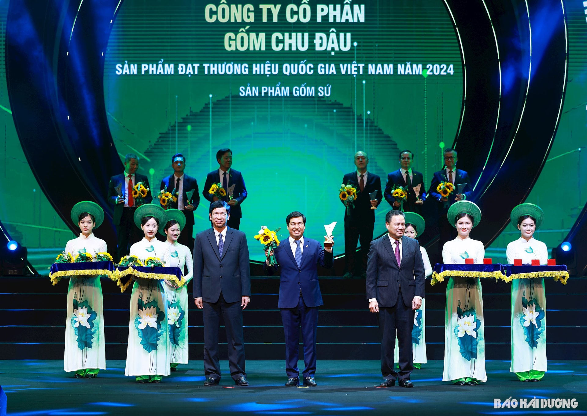Ban lãnh đạo Công ty CP Gốm Chu Đậu tại lễ công bố sản phẩm đạt Thương hiệu quốc gia Việt Nam 2024