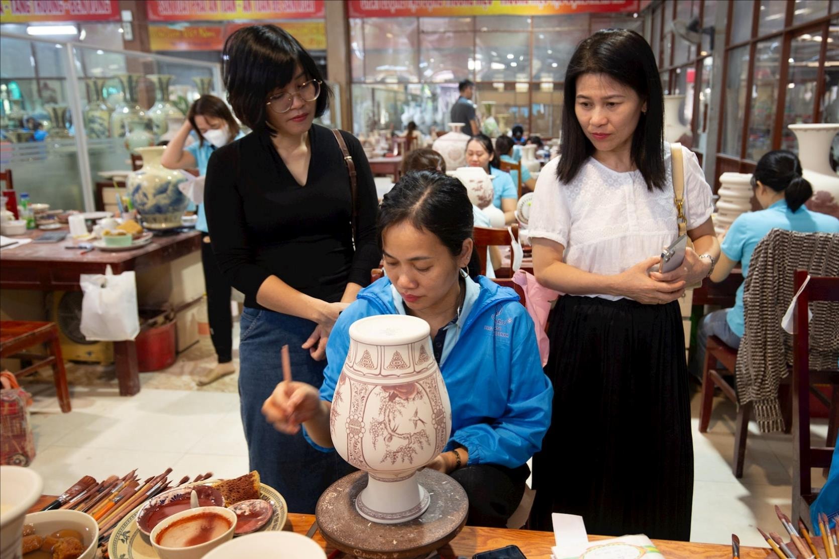 Từ đầu năm 2024 đến nay, gốm Chu Đậu đón trên 10.000 lượt khách đến tham quan, trải nghiệm