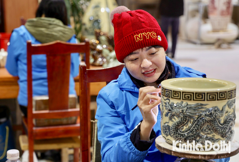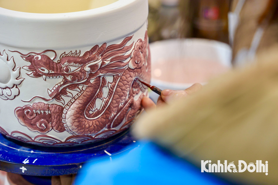 Công đoạn tiếp theo cần đôi bàn tay khéo léo, tỉ mỉ của công nhân vẽ các chi tiết.