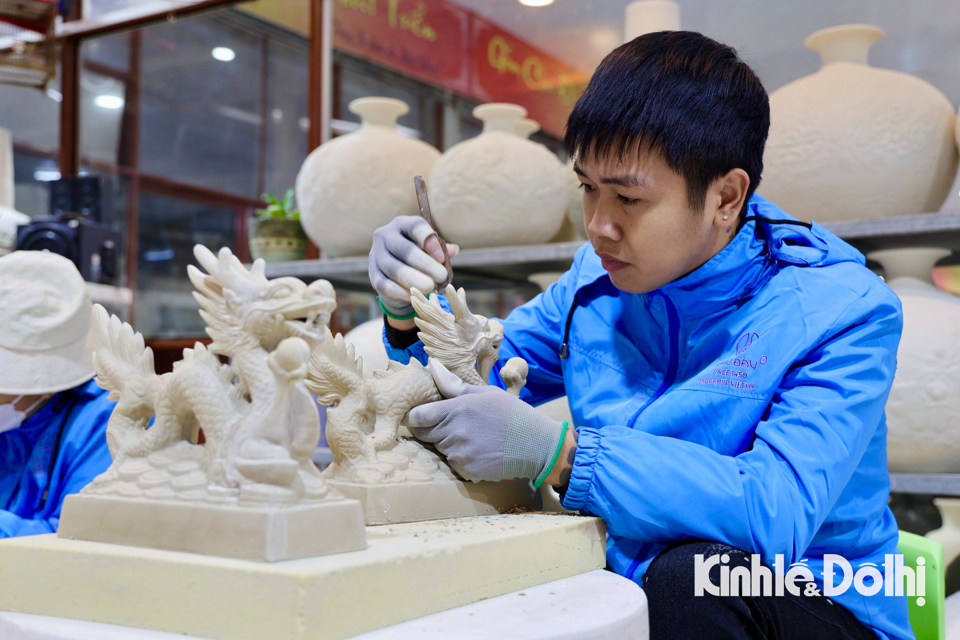Những ngày này, các nghệ nhân cùng công nhân hăng say tỉ mẩn sáng tạo để cung cấp ra thị trường nhiều sản phẩm trang trí hình rồng độc đáo phục vụ Tết Giáp Thìn 2024.