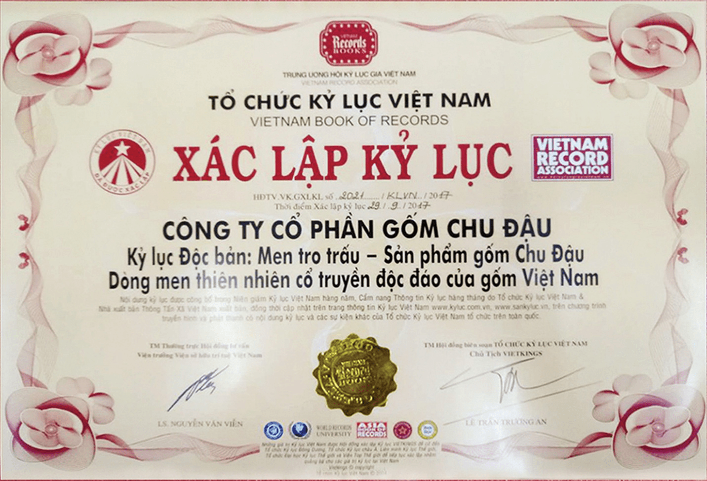 Không chỉ là sản phẩm thủ công mỹ nghệ, gốm Chu Đậu còn là niềm tự hào dân tộc khi ba lần liên tiếp được vinh danh Thương hiệu Quốc gia Việt Nam. Các bộ đồ thờ Chu Đậu đã hiện diện trong hàng vạn gia đình, tại các đền chùa, cơ quan, và được trưng bày tại hơn 40 bảo tàng danh tiếng trên thế giới từ Nhật Bản, Thổ Nhĩ Kỳ đến Mỹ, Pháp.