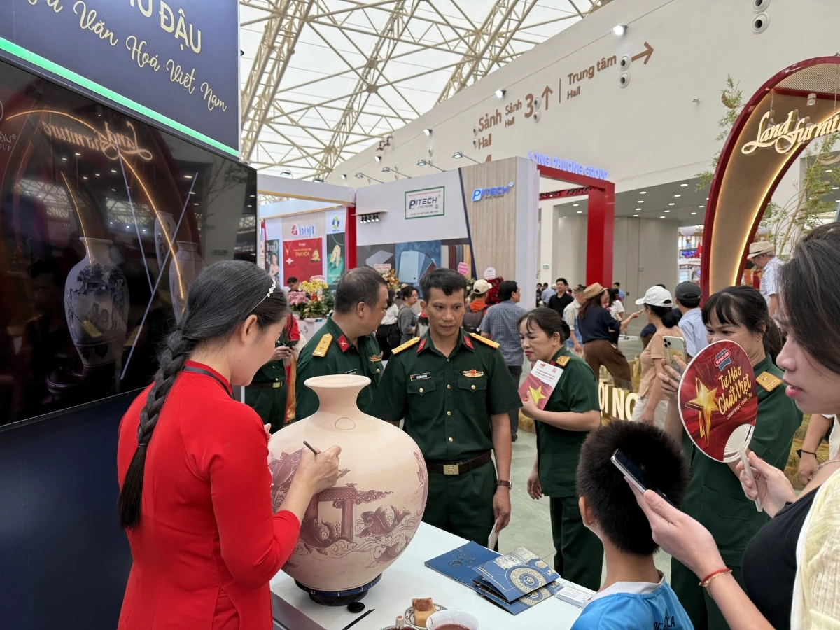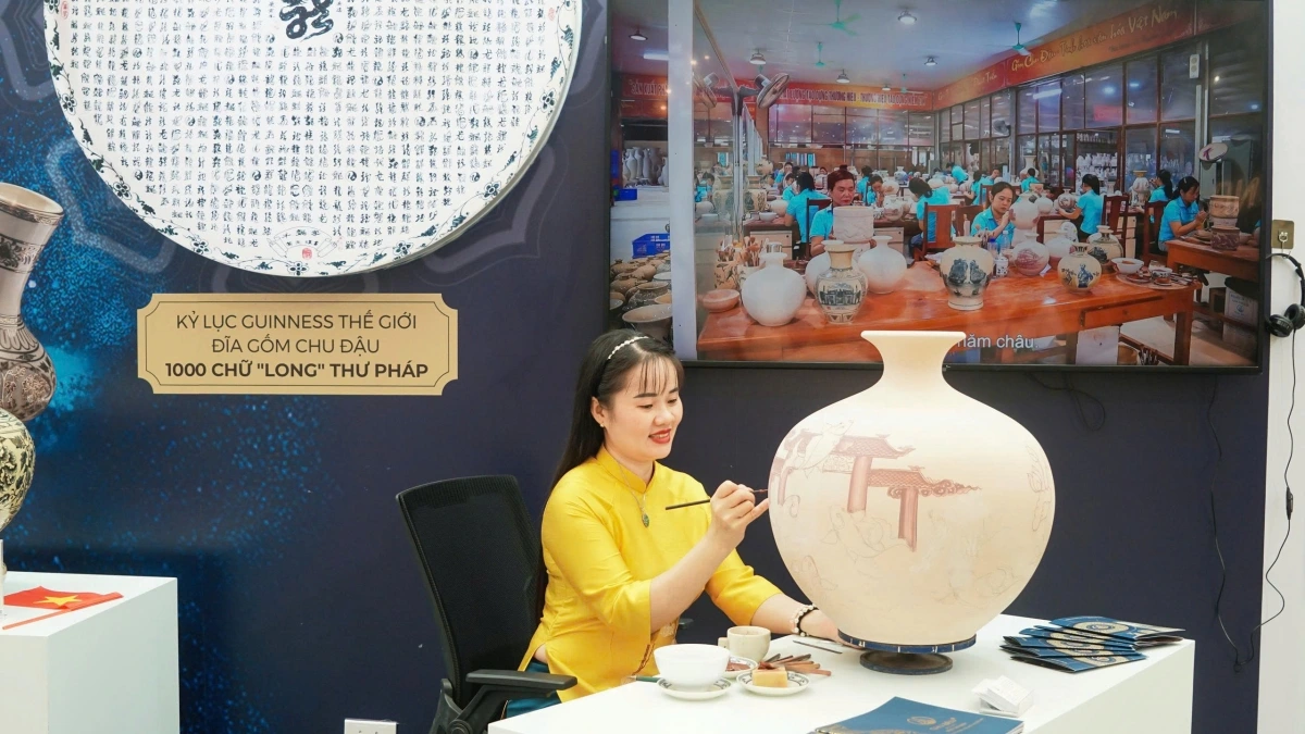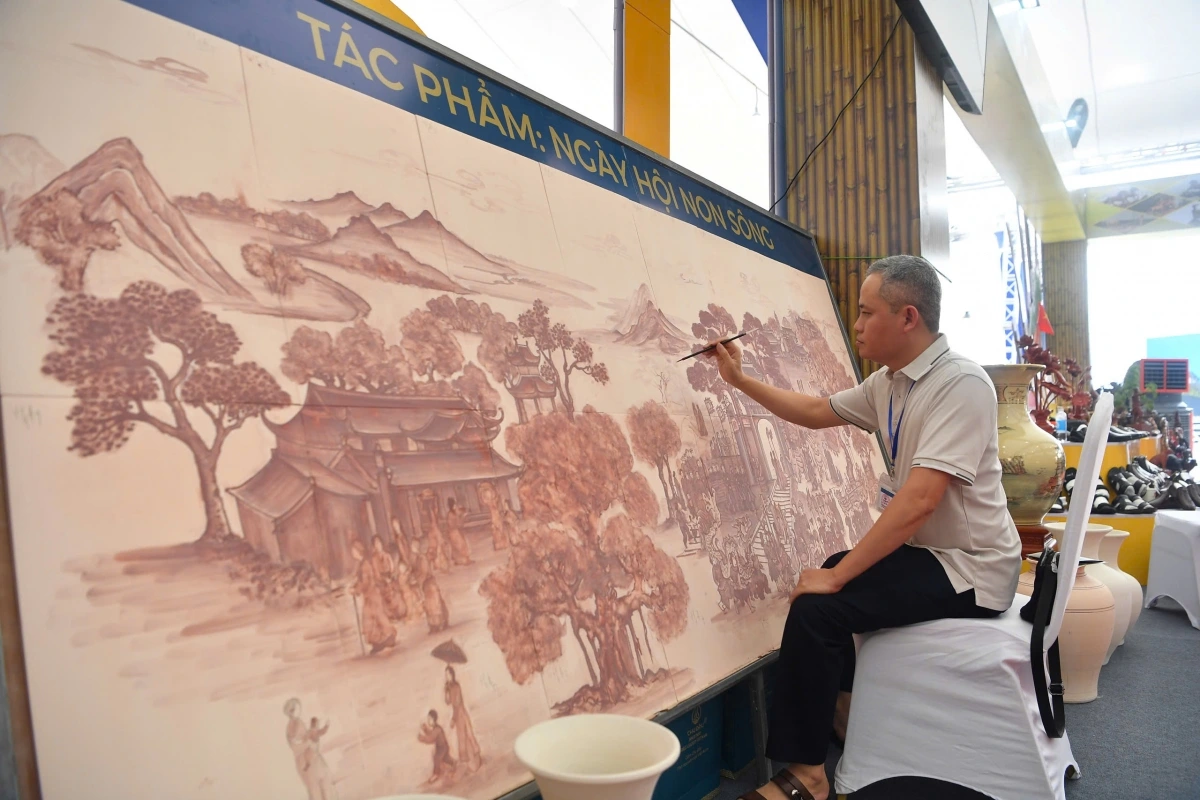 Đặc biệt, hoạt động trình vẽ họa tiết trên gốm của các nghệ nhân Chu Đậu tại triển lãm đã đem lại trải nghiệm sống động, tái hiện quá trình lao động thủ công tinh xảo, bền bỉ, khiến nhiều khách tham quan thích thú.