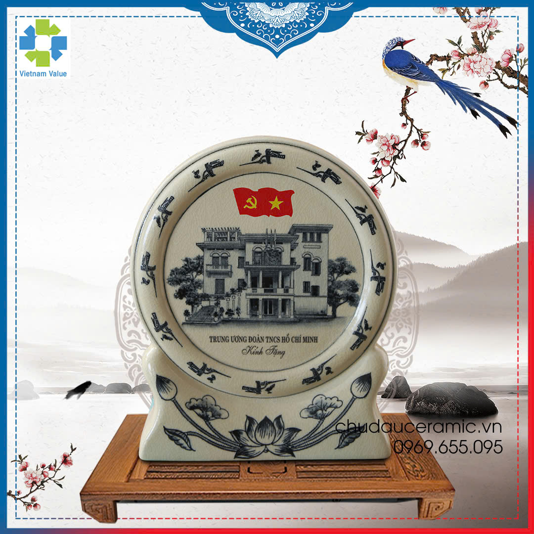 Đĩa cảnh Gốm Chu Đậu in logo