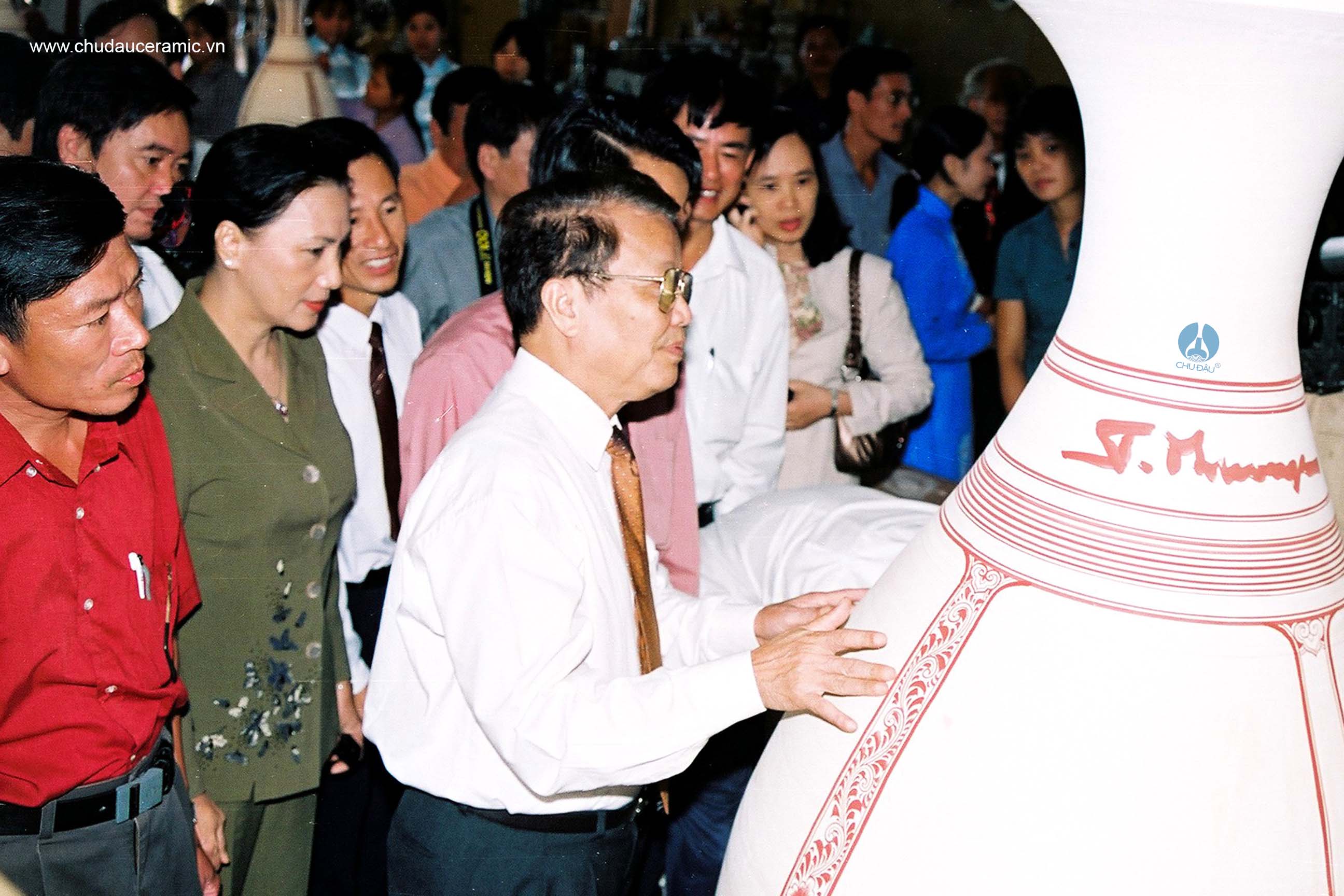 Chủ tịch nước Trần Đức Lương ký tên lên bình gốm Chu Đậu