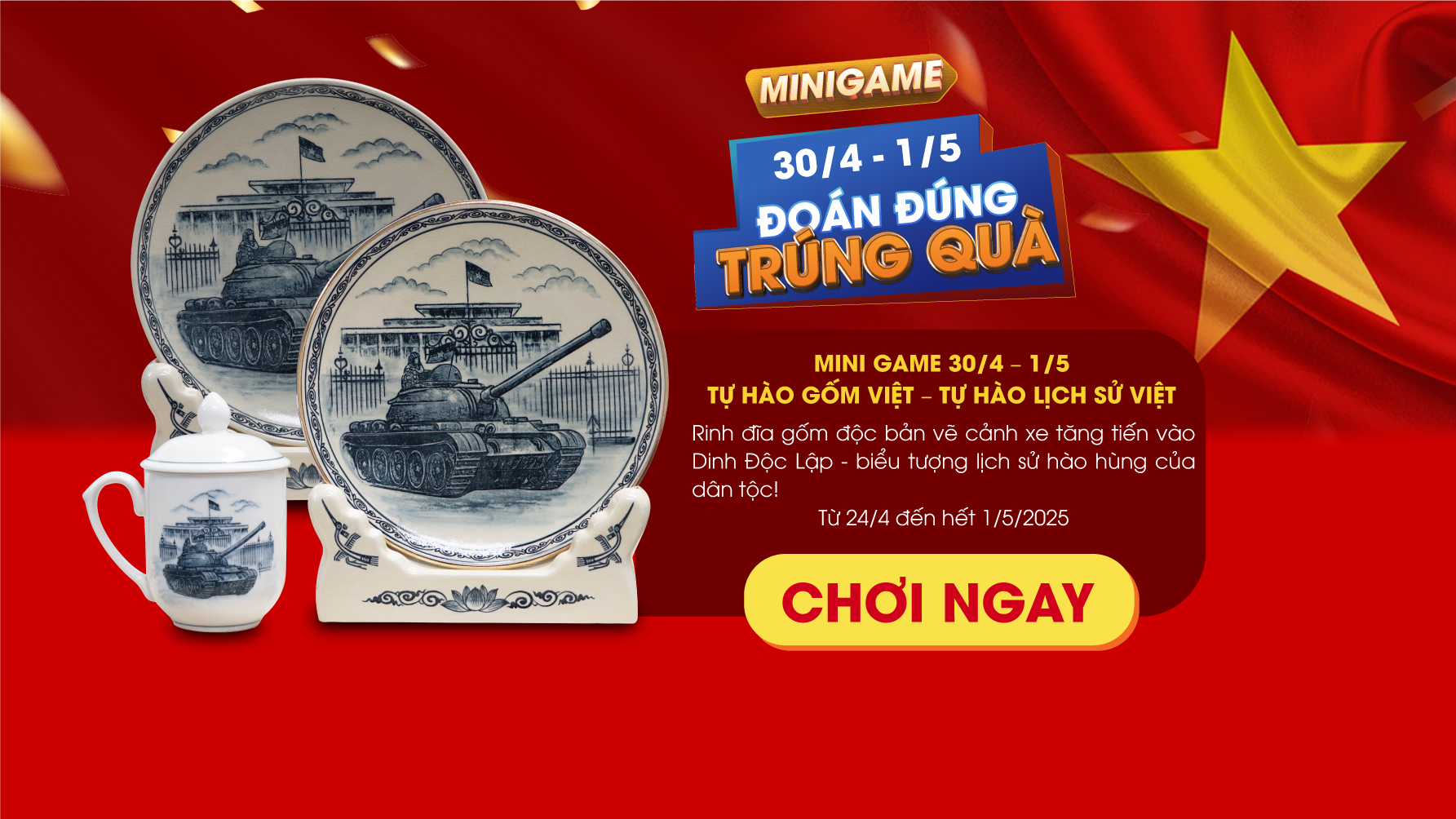 Hãy cùng chúng tôi lan tỏa tinh thần " “Tự hào Gốm Việt – Tự hào Lịch sử Việt” qua minigame đầy ý nghĩa với phần quà là ĐĨA GỐM CHU ĐẬU dành tặng khách hàng hoàn thành các bước sau.