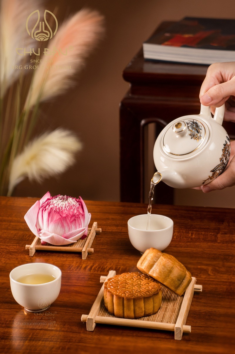 Với thiết kế sang trọng, kết hợp nét truyền thống và hiện đại, bộ trà Gốm Chu Đậu trở thành món quà tri ân mùa Trăng tròn 2023 ấm áp và tràn đầy yêu thương.