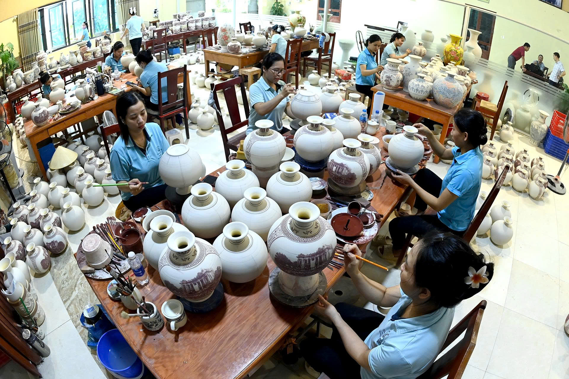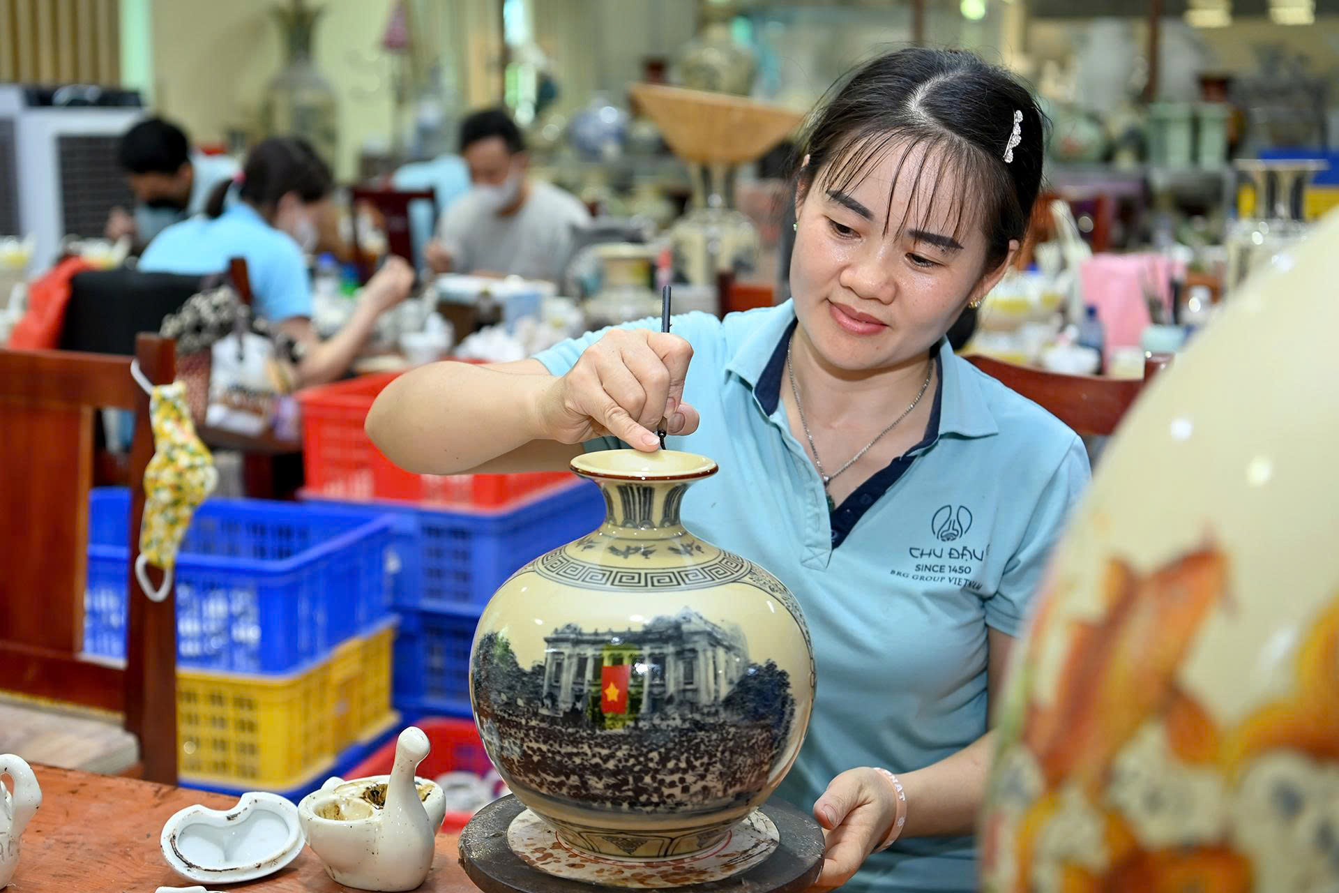 Các nghệ nhân, công nhân Công ty cổ phần Gốm Chu Đậu tăng ca làm việc để cho ra lò những sản phẩm độc đáo, mang ý nghĩa lịch sử.
