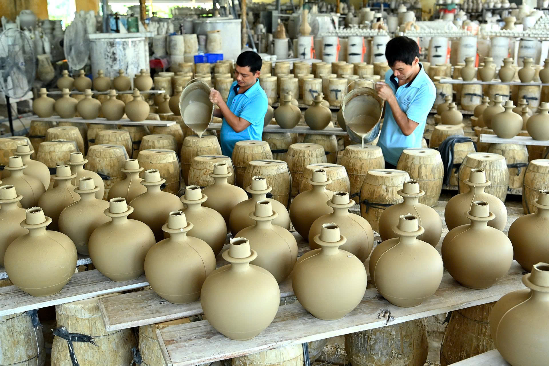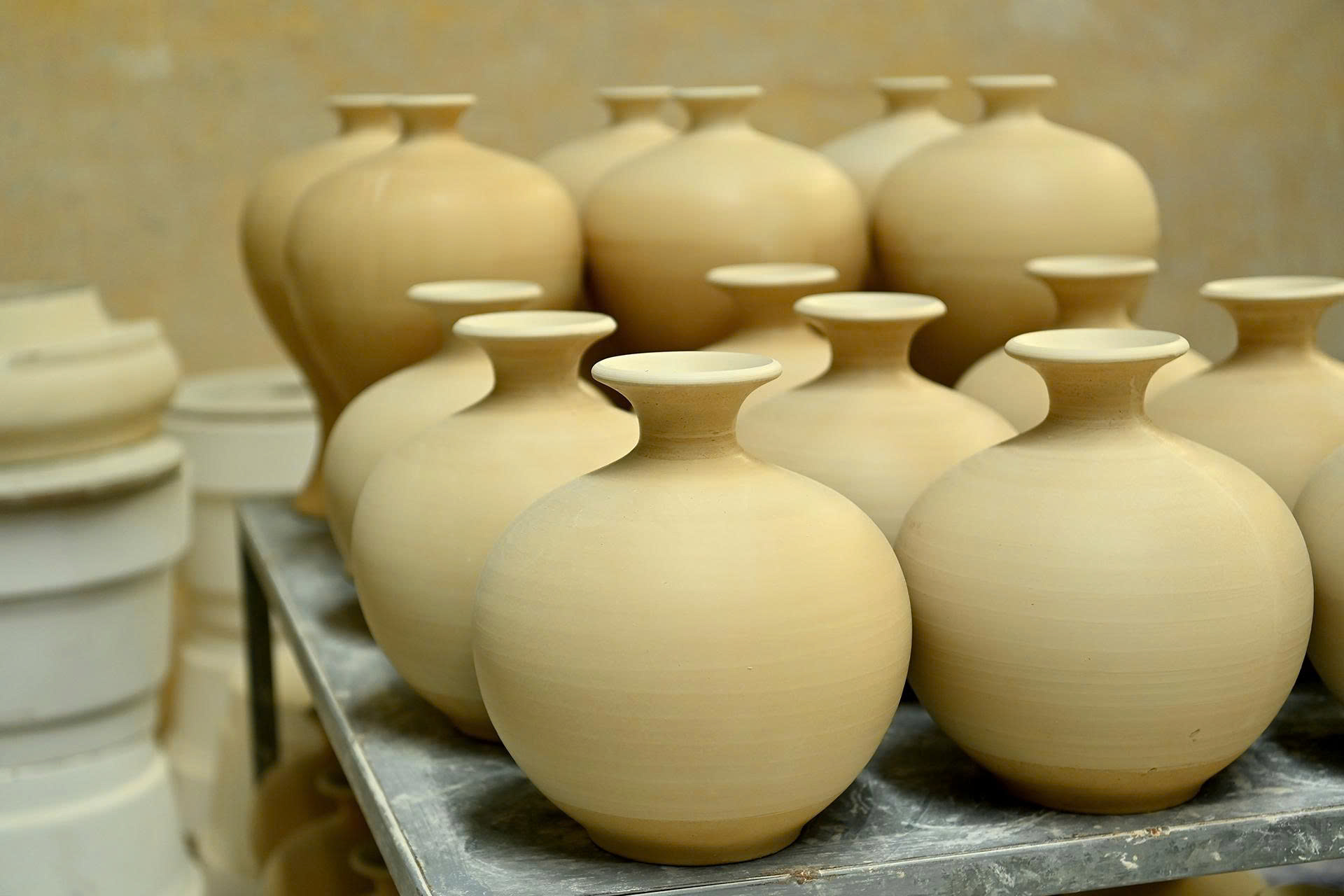 Những bình gốm giọt ngọc thô đang chờ nghệ nhân vẽ họa tiết
