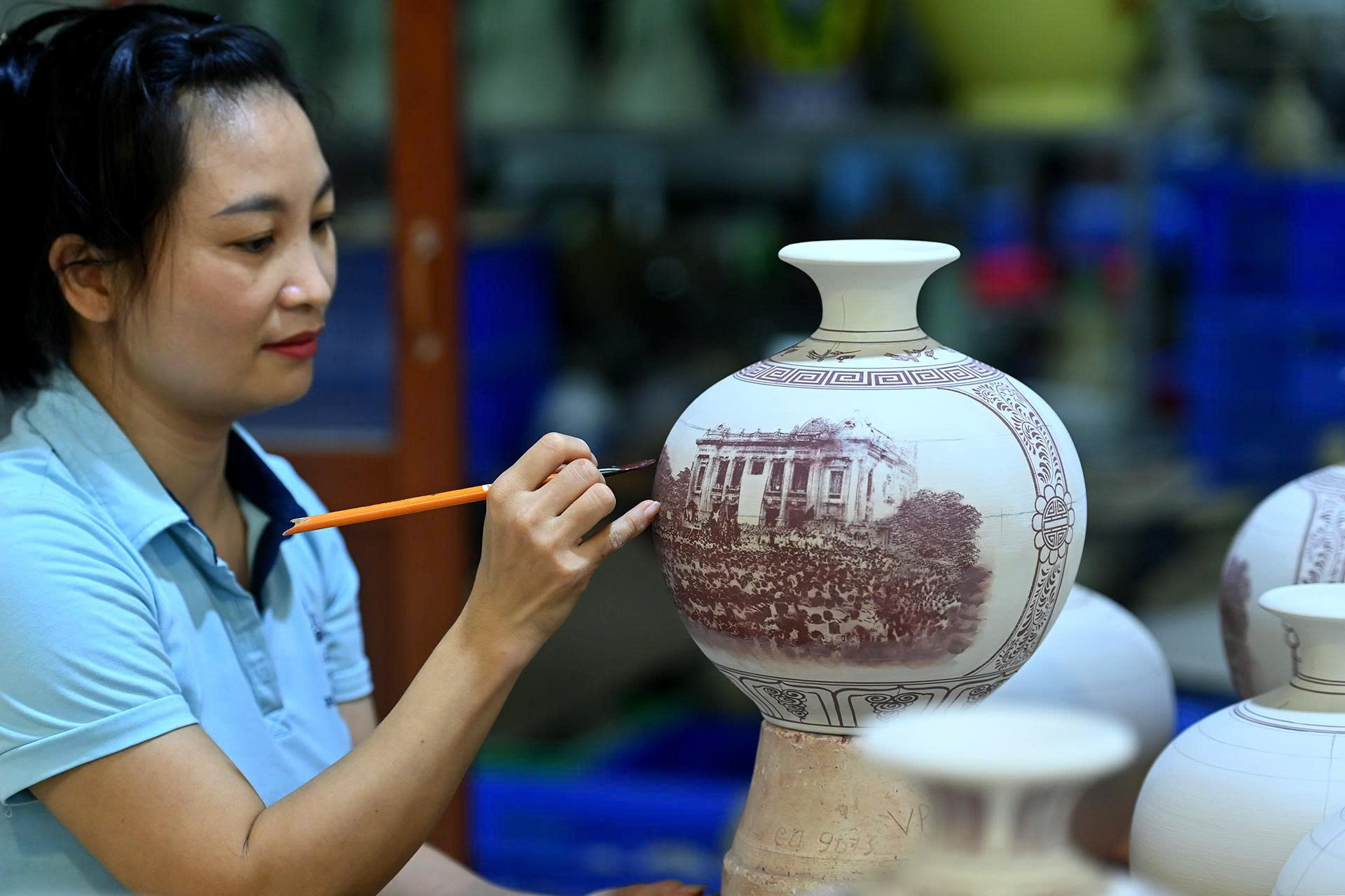 Bình giọt ngọc với hình ảnh tái hiện lịch sử hào hùng của dân tộc vừa được hoàn thiện.