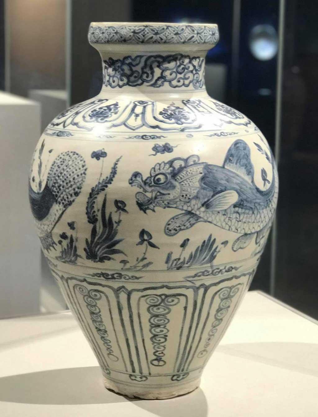 Chiếc bình hoa lam đắt giá vẽ cặp đôi thủy quái Timingila và Makara ở Bảo tàng Văn minh châu Á (Singapore)